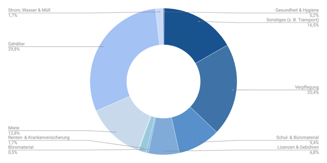 Dies sind alle monatlichen Kosten, welche wir im Rahmen unserer Tätigkeit am EFYE Education Centre haben. Aufgelistet im unteren Diagramm.